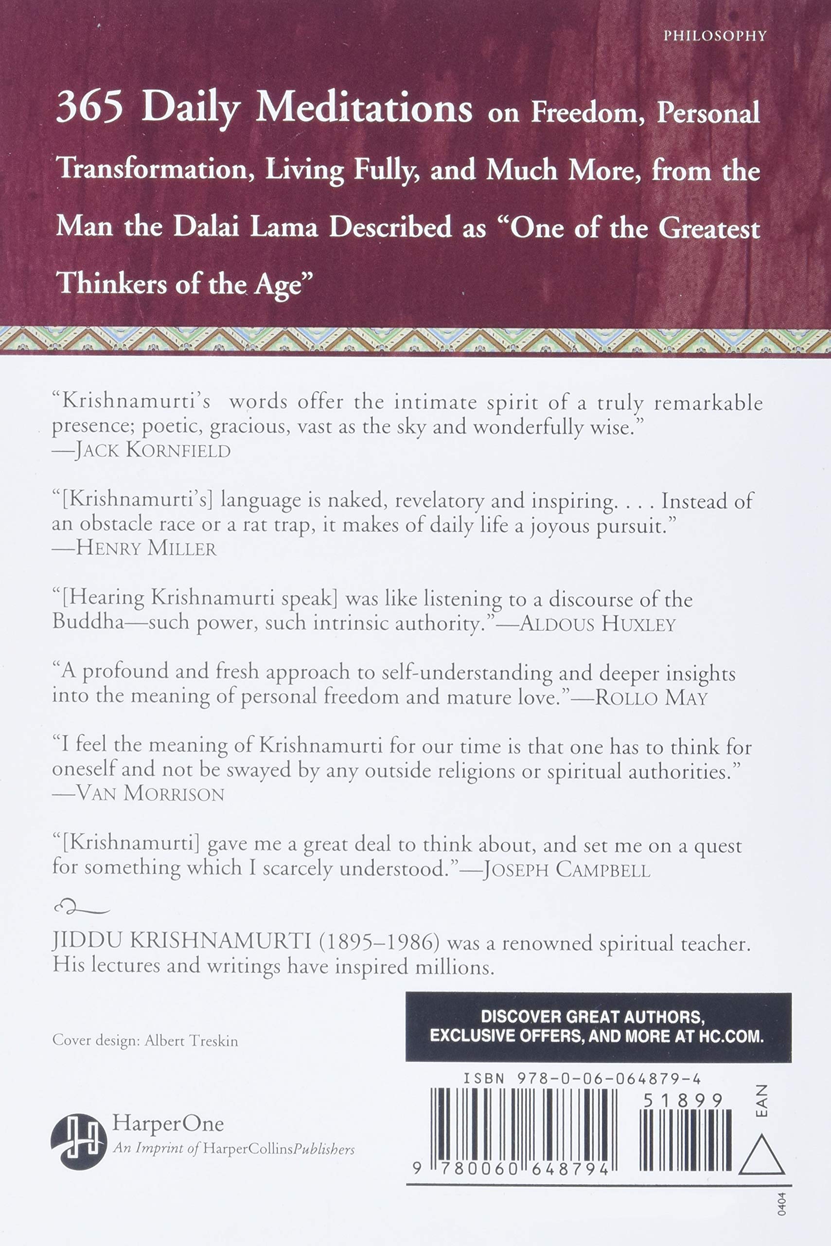 To read this ebook on a. Jiddu Krishnamurti Publisher. 365 Daily Meditations on Freedom Personal Transformation Living Fully and Much More from the Man the Dalai Lama Described as One of the Greatest.